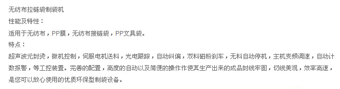 瑞安市欣业包装机械有限公司(原鑫业包装机械厂)位于浙南沿海经济活跃的瑞安市,专业生产塑料包装系列机械设备、历史悠久。公司主要产品有制袋机、无纺布制袋机、拉链无纺布袋制袋机.印刷机、吹膜机等。 企业自创办以来,本着“以品质换取顾客的信赖”“持续改进提高,满足顾客需要” 的方针,逐渐赢得了广大客户的支持和信赖,塑料吹膜机、无纺布制袋机等产品走出国门、远销东南亚、中东、俄罗斯、欧美等多个国家和地区。随着数字化信息时代的来临,欣业全体员 工将以年轻、充满活力的姿态,来迎接新世纪的机遇与挑战。 “诚信立身、信誉立业”作为企业的理念,我们把好生产、质量及售后服务的每一 道关,竭诚欢迎广大客商光临惠顾、共洽商机! 公司主要产品:XY-750/850/1000ZD全自动软式手提袋制袋机、RXYQ-800/1000微电脑多功能制袋机、RXY-900/1100自动穿带连卷制袋机、PVC PE I/II半弧形制袋机、PVC PE III半弧形制袋机(双线)、DRW-500/1000II多功能电脑热切制袋机、DRW-500/1000III多功能电脑热切制袋机、GFQ-600/700/900/1000电脑控制双层薄膜封切机、DFR-500/700电脑自动热封热切制袋、DFR-400*2电脑控制高速双彩制袋机、GFQ-600/700/900电脑控制自动冲口制袋机(四线)、XYQB-800/1000气泡膜制袋机、DZB-500/600/700/800电脑控制双层连卷背心,平口袋制袋机、XTY-HB自动软式手提环制袋机、SJ-50B/FM600 SJ-55B/FM800 SJ-60B/FM1000高速吹膜机组、SJ-45/FM600 SJ-55/FM800 SJ-60/FM1000 高低压聚乙烯双用吹膜机组、SJ-45*2/FM1000 SJ-50*2/FM1200 SJ-55*2/FM1500两层共挤旋转机头吹膜复合机组、SJ-55D/FM800 SJ-60D/FM1000 SJ-65D/FM1200 SJ-80D/FM1500 SJ-100D/FM2000旋转机头吹膜机组、SJ-60/FM600 SJ-75/FM800旋转机头聚丙烯吹膜机组等制袋机、吹膜机、印刷机产品。 |
