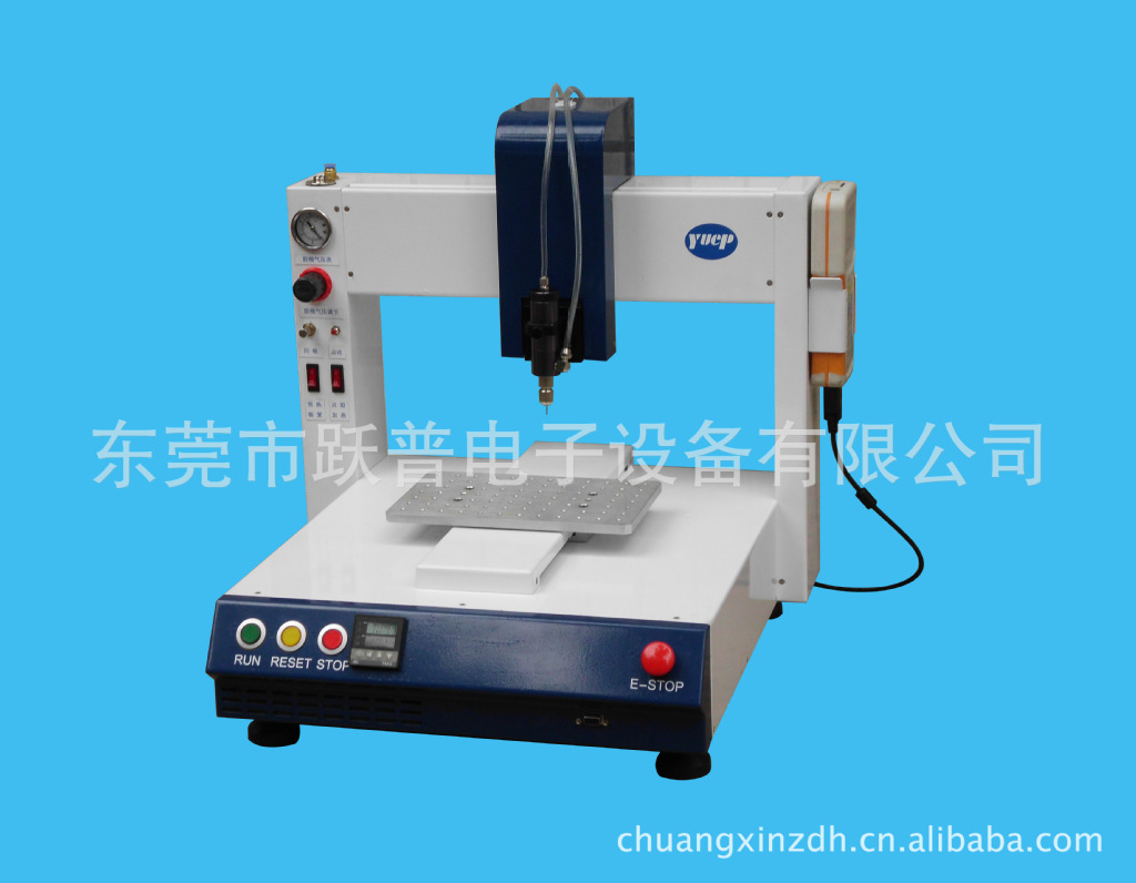 跃普点胶系列设备以其高精度、高性能、高质量、高效率、高集成的产品特点,为客户创新生产工艺,改进产品质量提供帮助。高精度,高速点胶机器手。对应小批量生产方式,提高生产效率。除点胶作业之外,可对应UV照射,零件放置,螺丝锁定,电路板切割、自动检测等各种工作。根据客户要求提供高品质产品和高性价比的整体解决方案,为客户提高品质效率、减低人工成本。