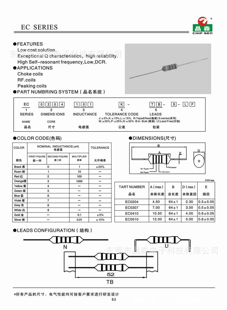 特性:用不同色碼表示電感的大小及公差,低成本,高Q及高共振頻率。