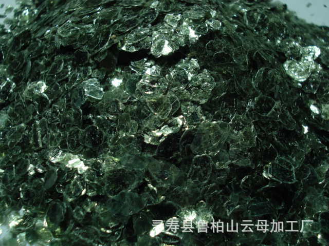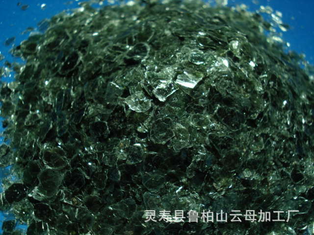 我厂生产的天然彩色岩片(云母岩片), 主要是以云母为原料,经破碎,粉碎, 分级, 风选,除杂, 包装等多道工序加工而成。