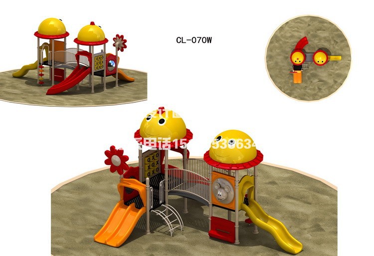 组合滑梯非常适用于活泼的场合游乐设施的结构安全耐用,其设计巧妙,色彩和谐,塑料的各个部件的巧妙结合,可给孩子带来安全、欢乐和活泼的感受。它集健身娱乐为一体,根据小朋友的兴趣及爱好精心设计各种不同样式,是一座新型.综合性很强的儿童乐园。是针对儿童喜欢钻.爬.滑等特点设计的,色彩鲜艳.娱乐性强.功能齐全.质量可靠。游乐设备整套设施通常包括门、桥、滑筒、屋顶、楼梯、平台、立柱、爬梯、滑梯、攀管、和绳网;滑梯全部用扣件连接,表面没有任何尖锐物凸出,每个部件均有多个型号和多种颜色选择;也可以根据客户的需要进行个性化设计、生产。本产品色彩鲜艳、不易褪色、高强度、防静电、耐磨、耐晒、耐老化、防裂,结构安全耐用,儿童滑梯设计巧妙、色彩搭配和谐,塑料的各个部件的巧妙结合,儿童游乐设备给孩子带来安全、欢乐和活泼的感受。 组合滑梯系列产品由独特而千变万化的游戏设计,令建造游乐场者、幼儿园、社区能够在有限的空间里营造出无限的欢乐和吸引力,款式时尚,大方,高档。全新的游乐设备系统,从立柱、夹钳到立柱顶盖都采用铝合金制成,恒久耐用。防锈性能特强。表面更有色彩丰富的静电喷塑,防紫外光,长久使用亦能保持出色稳定的效果。