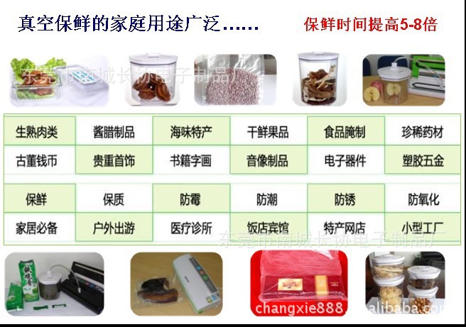 8、抗氧化、防潮、防霉、放蛀。许多物品变质、锈化、老化都是氧气和水份在适宜温度中的化学反应及细菌繁殖造成的,而保鲜罐(袋)是密封的真空环境能隔绝外界氧和水,因此它不仅对吃的对用的同样有保鲜作用。它可以为您保存:高档照相机镜头及其它光学仪器,电子元件,磁盘, 有纪念价值的胶卷、相片及录象带,金、银、钻石等手饰,钱币,印板,珍贵文史书刊、字、画等等。