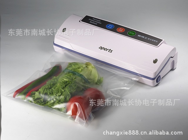 7、家庭普遍使用的胶袋装东西后均可用本机进行封口。市场买回来的菜放在普通胶袋用本机封口后放入冰箱冷藏,锁水份、防串味保鲜效果也很不错!