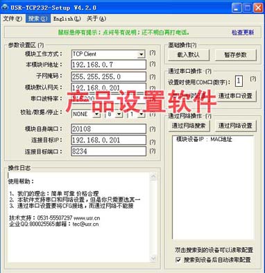 | 串口服务器 | USR-TCP232-300 | RS232/RS485 | 带外壳串口服务器,通过网络设置参数 |