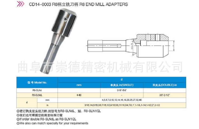 曲阜市崇德精机械有限公司秉承“崇尚品质、精益求精、客户至上、诚信务实,创新发展”的品质政策为经营理念,经过不懈努力,成功研发出适合国内外市场数控机械高精密、高转速需求的高精度弹簧夹头,刀柄等机床附件,我公司生产的ER夹头用优质弹簧钢制造,符合德国DIN6499标准。硬度:HRC44-48,精度为:A级8u, AA级5u ,包装盒为塑料盒 。