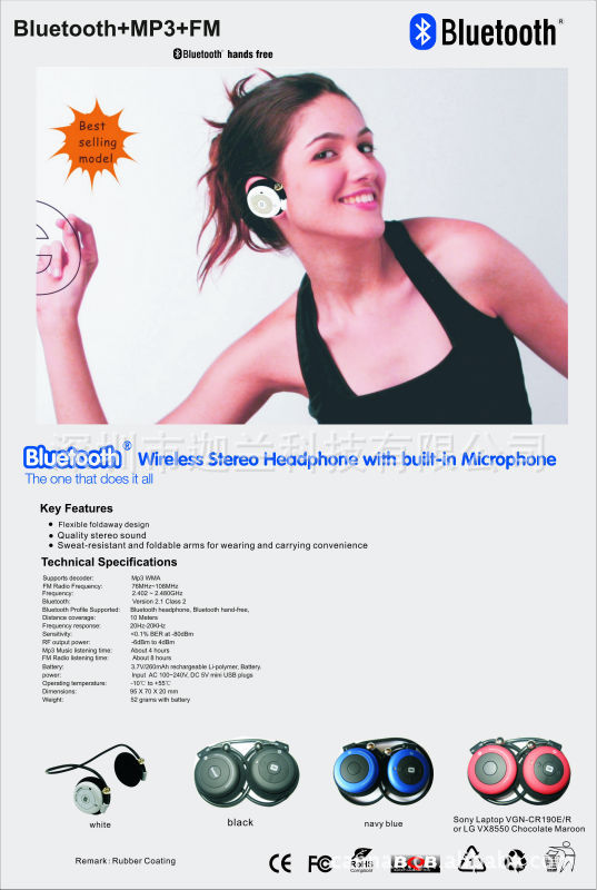 2).Supported: BluetootHeadset , Handfree ,MP3,FM Radio