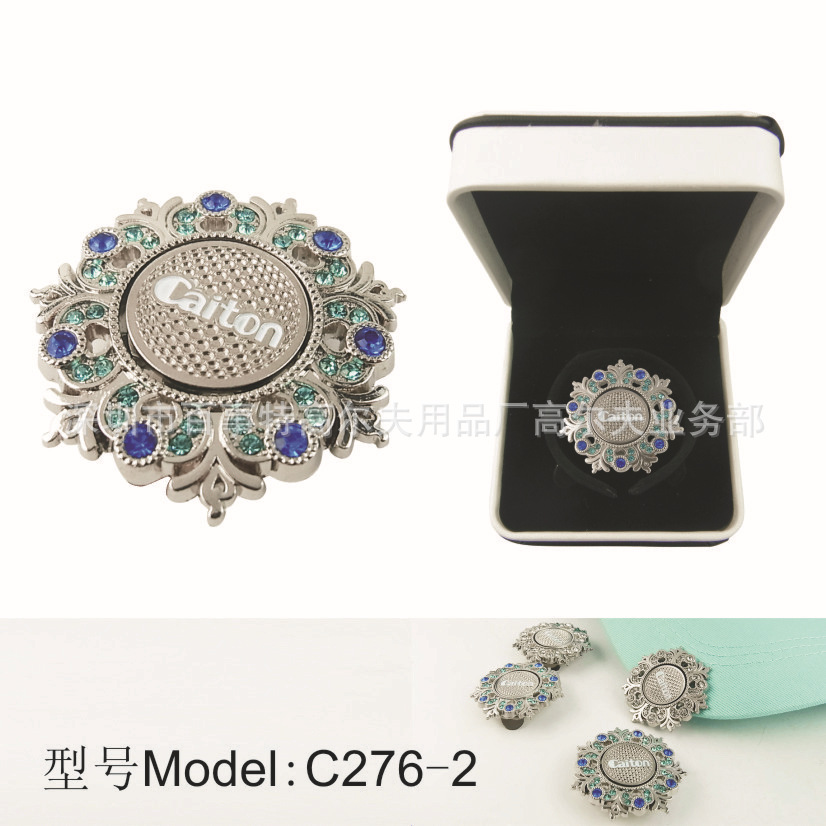 高尔夫帽夹百事特高尔夫用品厂,专业生产高尔夫帽夹、水平仪帽夹、水钻帽夹、卡通帽夹、脸普帽夹等各类高尔夫帽夹!具体工艺可分为:冲压,液压,电镀,烤漆,珐琅,印刷,贴纸滴塑,腐蚀,等等.冲压涉及铜、铁、铝冲压;锌合金、锡合金、铝合金压铸;腐蚀涉及铜、不锈钢、铝腐蚀或镂空;冲压出来的产品图案花纹清晰,饱满,立体浮雕效果强。电镀表面完整,细致,均匀,色相,光泽一致,没有明显的粗糙,起泡,烧焦,裂纹,划痕,脱层等电镀缺陷。填漆部位到位不漏底,经过工人手工抛光以后,去掉了产品边缘的毛刺,填漆出来的产品表面光滑没有划横,气泡,污陷,边缘规整,光滑,没有毛刺。以上产品可以根据客户的要求制作不同的形状,logo,可电镀仿金,镀镍,镀银,镀真金,镀铜,镀青铜,镀黄铜。根据不同的用途对产品的颜色跟图案进行更改,做到让客户放心,消费者满意。我们会尊重每个客户提出的要求,采纳每个客户提出的建议跟意见,积极进行改进跟创新,客户的建议跟意见就是我们宝贵的财富,我们真诚的希望能够跟每一个客户建立起良好的合作关系。可来样设计打样,欢迎来电咨询:13410162224吴小姐有需要联系13728939807。QQ:1178164852吴小姐
