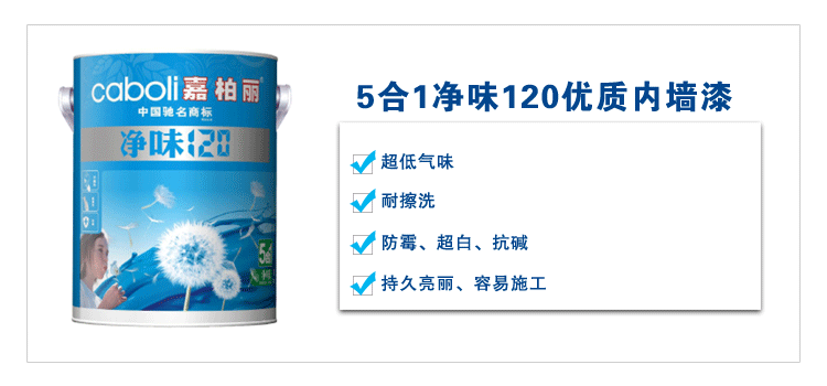 “净味120”内墙漆的优质配方健康环保,同时加强了防霉、耐擦洗的功效,其可调色功能轻松满足多种配色需求,使墙面持久亮丽。“净味120” 墙面漆,是家居及商业空间墙面涂刷的理想选择。哑光柔和温馨的色泽,较适合家庭装修,宾馆,普通住宅番新等用途,哑光漆在涂料市场了也比较普及价格经济实惠受欢迎。