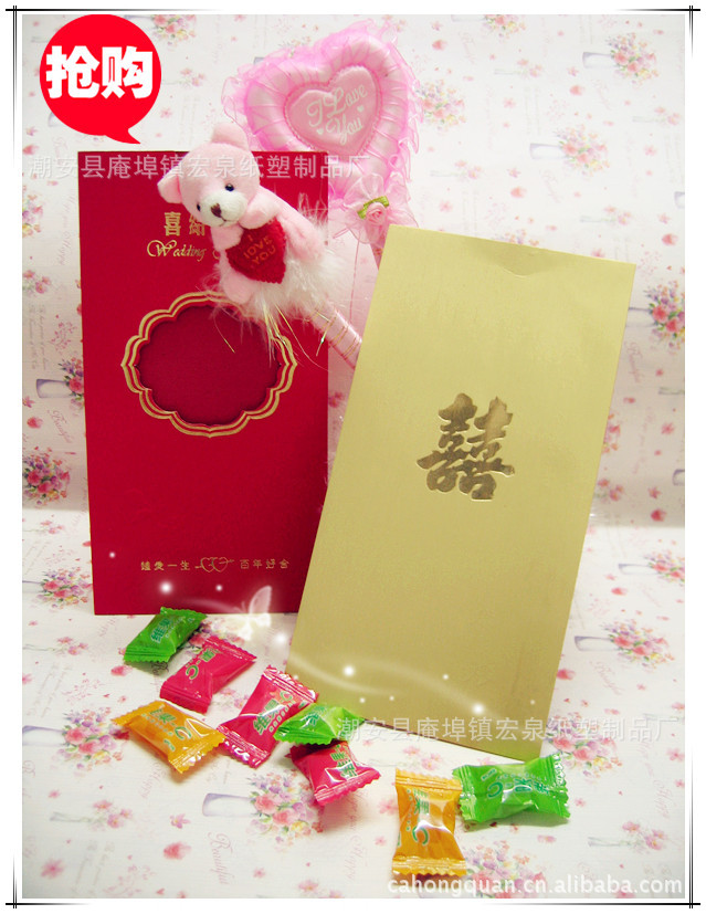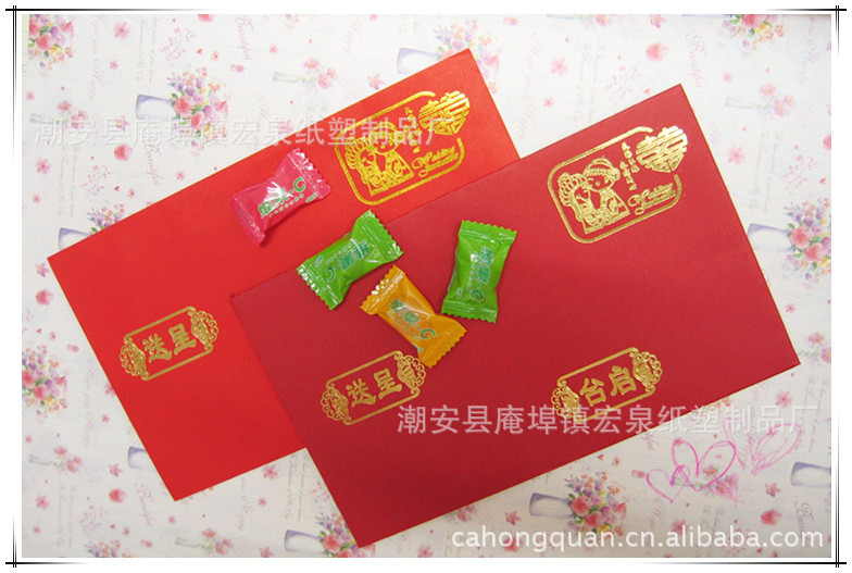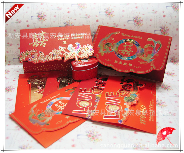 喜贴---原本是家有喜事时通知亲友的一种媒介,口头通知不郑重,所以用文字表现,其实就是通知家有喜事的文本。 喜帖在中国由来已久,形式有直有横,颜色多为大红色。内文撰写的方式到今日依然大至相同,有一套俗成的礼仪用字。较特别的是日期通常会印上两种日期,一种是农历日期,一种是公历日期。此外,有些家庭也会印上祖父母辈的姓名。 中国清朝的喜帖称为团书,是结婚时的周公六礼书之一,当男子向女方家订婚成功,就会印制团书告知众亲友。