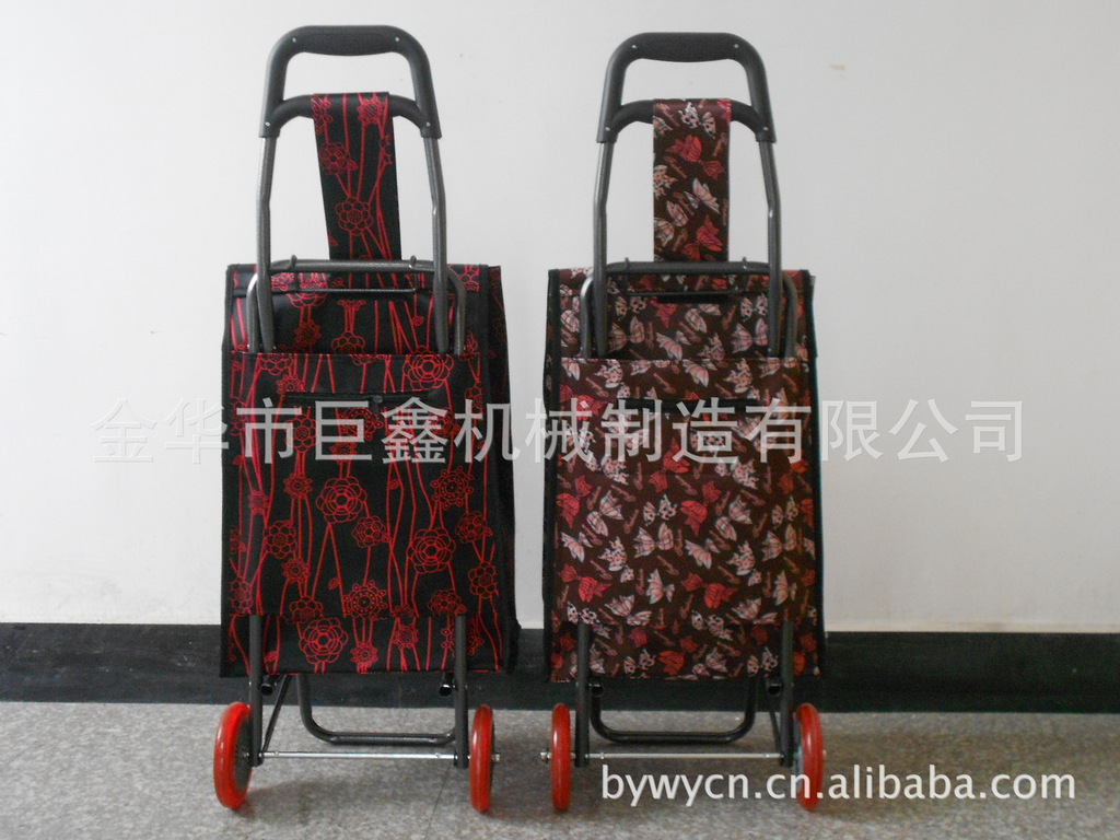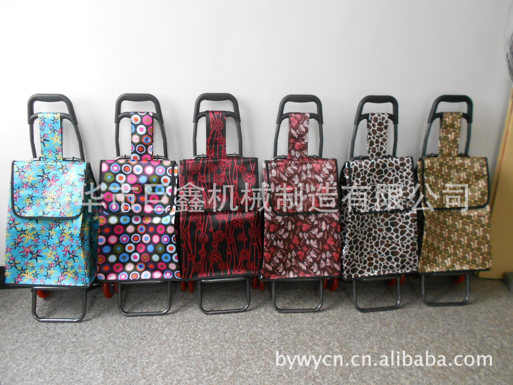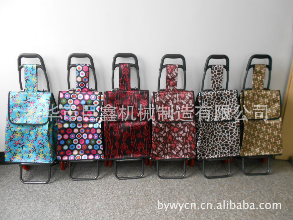 时尚箱包车的特点:1、时尚美观,面料结实耐用,并且防水。2、轮子是通用国际快装设计,对准轴插入使劲摁一下,听见嘎搭声响就自己衔接,U型号卡子向后拉一下就可以拆卸轮子,安装的包包可以随时取下清洗。3、特有的静音设计,轮子走在路上安静无声,解决购物车轮子噪音烦人的问题!