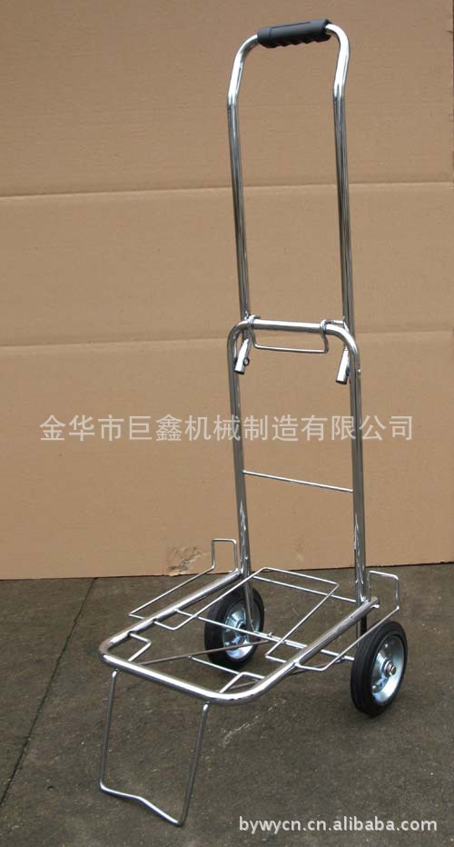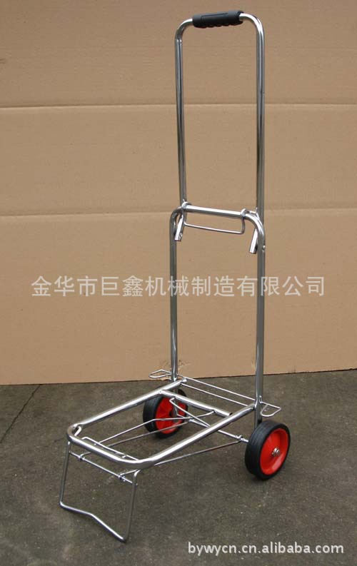 体积小,重量轻,携带方便,是购物、旅游、体闲的必备品。产品表面啧塑。展开尺寸:49*42*97cm;折叠尺寸:64.5*42*14cm, 可承重50公斤。
