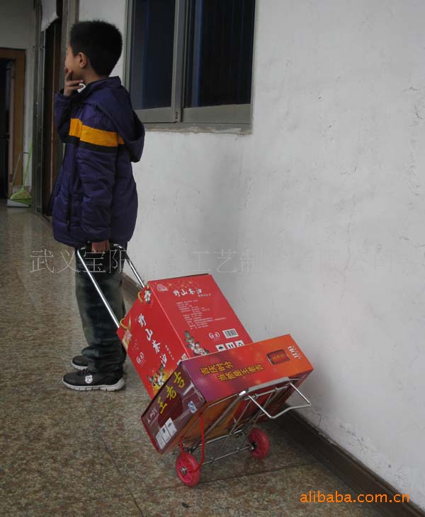这款车的设计合理,可以折叠,折叠后体积小,特别是在轮子的设计上采用的是滑板车上用的带轴承的PU轮,特别耐磨,没有普通塑料轮子拉起来咔嗒咔嗒的嘲音,载重又大,拉起来轻松,轮子的颜色有红色、紫红色、黄色、粉红色、蓝色混装,既便是十来岁的小孩也可以拉起几十斤重的货物,是您居家旅游的必备物品。