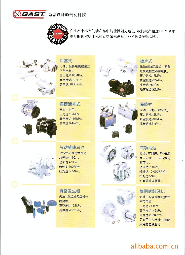 嘉仕达GAST的真空泵提供一个范围很广的选择: