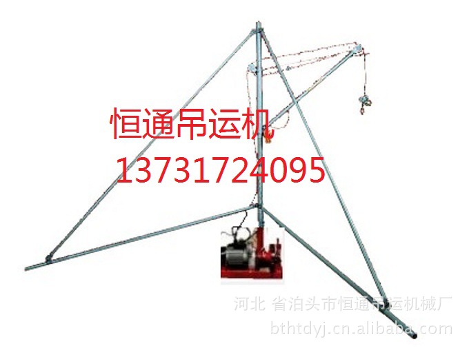 产品性能2011年最新旋臂式吊运机、建筑小吊机、快速小型吊运机、家用小吊机、双柱直滑式吊运机、三立柱直滑式吊运机、小型吊装机、小型起吊机上市.恒通吊运机从安全性与实用性出发,根据实际操作需要,进行合理的配置, 采用无缝钢管做支架,确保长期使用不变形,安全性极强,采用名牌傍磁式电机,功率大,劲头足,配有大功率散热风扇,有效避免电机停机保护,恒通机械为你提供简单实用,性价比更高的产品。。