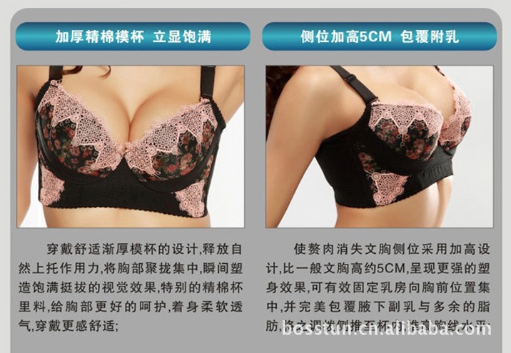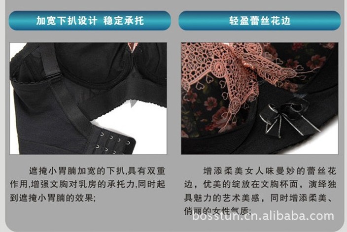 黑色花团锦簇加厚精棉模杯丰胸款刺绣塑型文胸夏日MM必备