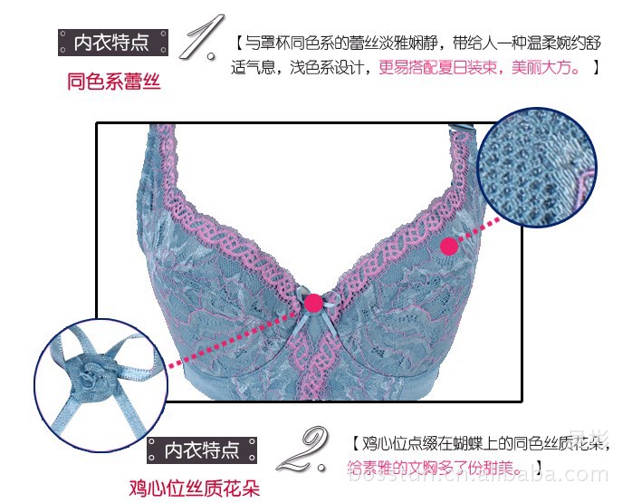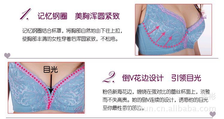 蛋白蚕丝聚拢内衣 防副乳胸罩 调整型文胸 薄杯五排扣