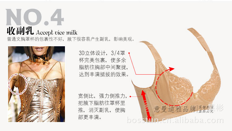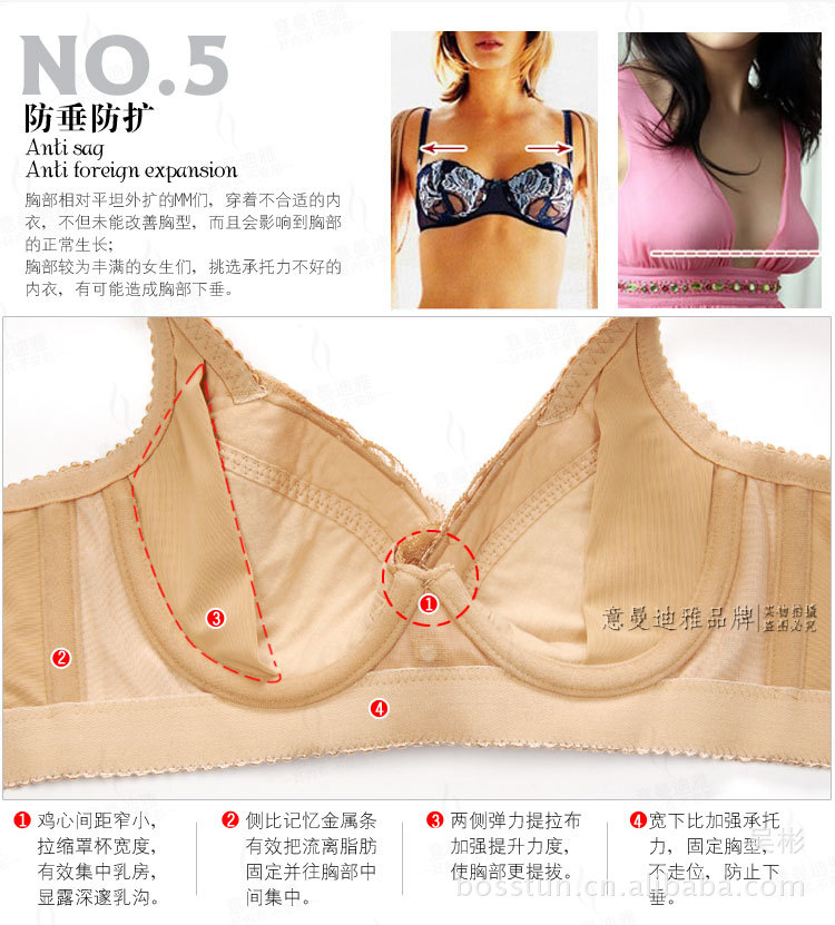 蛋白蚕丝聚拢内衣 防副乳胸罩 调整型文胸 薄杯五排扣