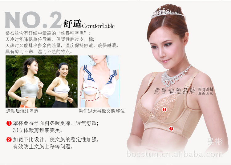100%桑蚕丝 高端调整型薄款聚拢文胸 美体内衣