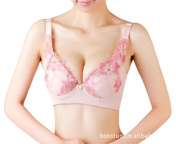 粉红佳人调整型短文胸 粉色深V 聚拢