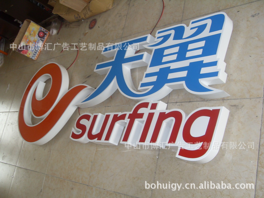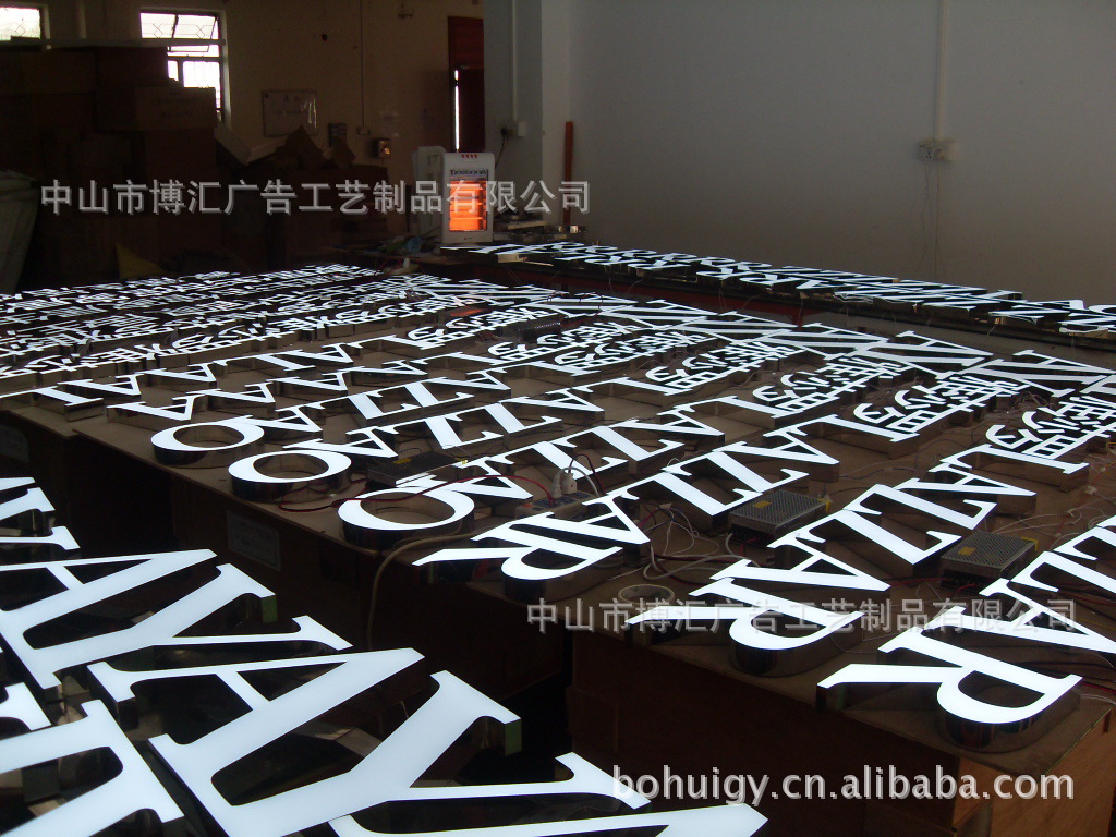 我们是专业制作不锈钢字、led不锈钢字、led发光字、拉丝不锈钢字、实心字、镀金字、钛金字、外露led发光字、亚克力发光字、树脂发光字、品牌门头字、连锁店门头字、公司LOGO标识的制造商,位于伟人故里广东省中山市。有多年的制作经验,凭着过硬技术和优质的服务与多家企业都有合作如“FEELI00% 柏仙多格、SANFAN 三番、金飞马、婷美、珀莱雅、美的....等。2009年7月博荟工艺已获得7部委颁发的“中国广告工艺优质供应商”称号!我们放眼未来、不断进取!继续保持把客户的利益放在首位,把你的满意当成我们的目标.深信质量是生产之本,信誉乃发展之道!我们将更加努力为顾客提供更高、更好、更靓的产品把“精益求精、尽心尽力”不当是口号而是用心、用力去实践!