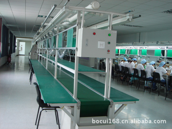 流水线生产线设备皮带输送组装线由南京博萃自动化设备有限公司专业设计制造,该生产线设备采用双边长条工作台、中间皮带线输送结构,线体上方设置作业指导书架、置物台、插座、气路、吊路、照明灯具等,线体下方设置抽屉或工具柜等,皮带流水线采用PLC变频调速,一流品质、周到服务,欢迎惠顾!合作!
