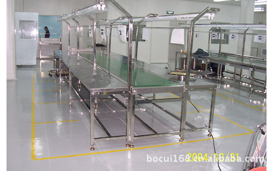 流水线皮带线由南京博萃自动化设备有限公司专业设计制造,该皮带线可采用防静电皮带或普通皮带输送,线体上方可设置照明灯具、气路、作业指导书架、吊路等,线体下方可设置插座、抽屉、气路、工具箱、挂盒等,专业品质、一流服务,欢迎合作!图为皮带输送流水生产线。