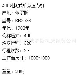 俄罗斯400T闭式单点压力机/出售俄罗斯400T闭式单点压力机K9536k2536