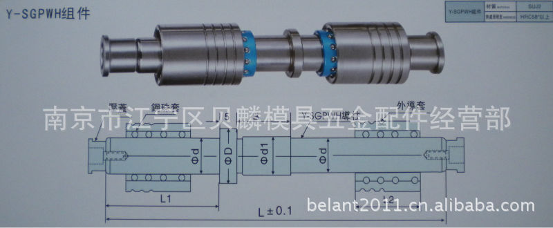 导柱:SUJ2材质,硬度HRC58以上,经热处理后磨削加工,其韧性、光洁度及其定位性能。工作精度高,耐磨性好。导套:SUJ2材质,硬度HRC58以上,磨削加工后,尺寸精度0.005mm,同轴度ф0.005mm。为了提高其耐磨性,还有MoS2及铜合金镶嵌式结构的含油导套。钨钢冲头:材质:V30 硬度:88-89HRA ②材质:V40 硬度:87-88HRA ③材质:超微粒子 硬度:90-92HRA 根据客户的使用工况,推荐适合的材质。阶梯凸模精密级同轴度可达ф0.0015mm,凹模精密级同轴度可达ф0.0025mm,表面粗糙度可达 Ra0.05。HIP处理,使组织更致密,寿命更长。 司笥 :材质:SKH51 硬度:59-61HRC 可加工的最小杆径达ф0.2mm,最高精度达0.002mm。我公司经过潜心研究,是世界上率先开发并使用高速钢做推杆的厂家,该类产品硬度高、韧性好、耐磨性和耐热性,更适用于精密模具,可显著提高其使用寿命,特别是精密模具的热形变得到了有效的控制。