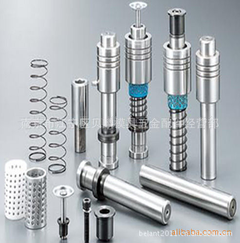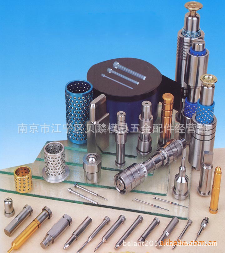 本公司专业生产销售直导柱、台阶导柱、直导套、有肩导套、拉杆导柱、斜导柱、滚动导向件、精密辅助导柱、精密辅助导套、外导柱组件等。 导柱、导套用来自日本牌号SUJ2现成的管料,生产端子模导柱导套,辅助导柱导套,脱料板导柱导套等各种非标准件导柱导套,用于各类、塑料、冲压模具,精度高、耐磨,寿命长,普通导套材质SUJ2、铜钛合金,硬度:HRC58~60且均匀,无给油导套材质:铜系合金+MoS2,内外径精密度保证±0.002mm,分为:SRP外导柱组件、SGP外导柱组件、TRP外导柱组件三种基本规格。外导柱组件更具有优良的导向性,垂直度均在0.01MM以内,能满足高速稳定的冲压要求,组模方便快捷,是你五金冲压的首选。