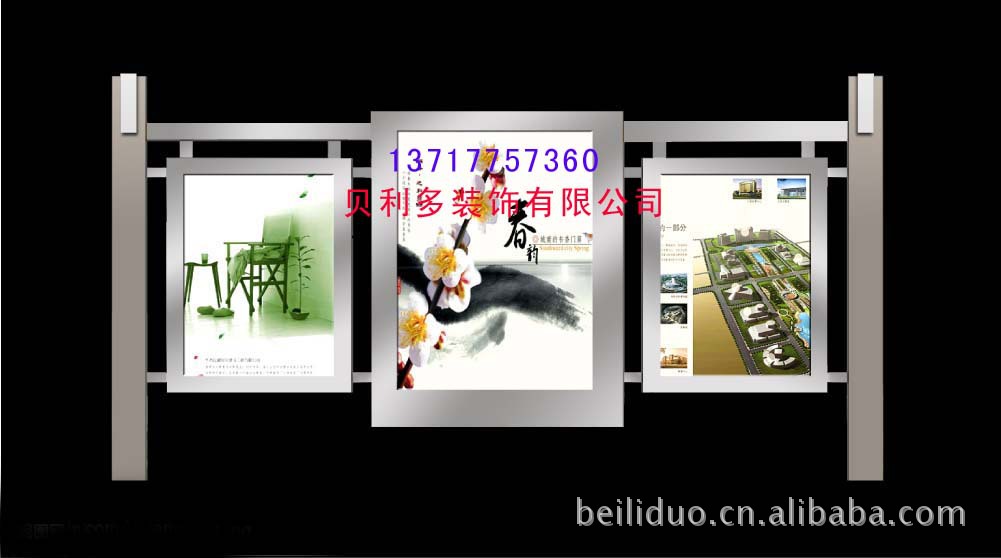 贝利多公司主要加工制作:不锈钢宣传栏、通告栏、玻璃橱窗、社区宣传栏、企业宣传栏、宣传栏、校园宣传栏,不锈钢旗杆、电动旗杆、变节旗杆、风向旗杆等,本公司有一批专业的宣传栏设计队伍和经验丰富的工程施工人员。做工精细、保证质量、服务一流!