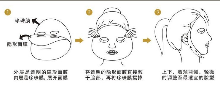 隐形弹力面膜由来: 全新品种面膜——“隐形面膜”,可谓是美容界贴敷式面膜划时代品种,隐形面膜的灵感起源于医药用纱布;一般纺间普通的无纺布,往往不能够服贴于肌肤,导致精华液不能够被皮肤所吸收,从医药用纱布取得灵感,把面膜改良,因厚重而无法服贴于肌肤的主要缺点;采用吸水量更佳的新材质,研发出全新品种的”隐形面膜”,最早在2008年出现第一代隐形面膜——“隐形蚕丝面膜”;根据第一代再升级改良的第二代隐形面膜,在2011年出现称为:隐形弹力面膜。