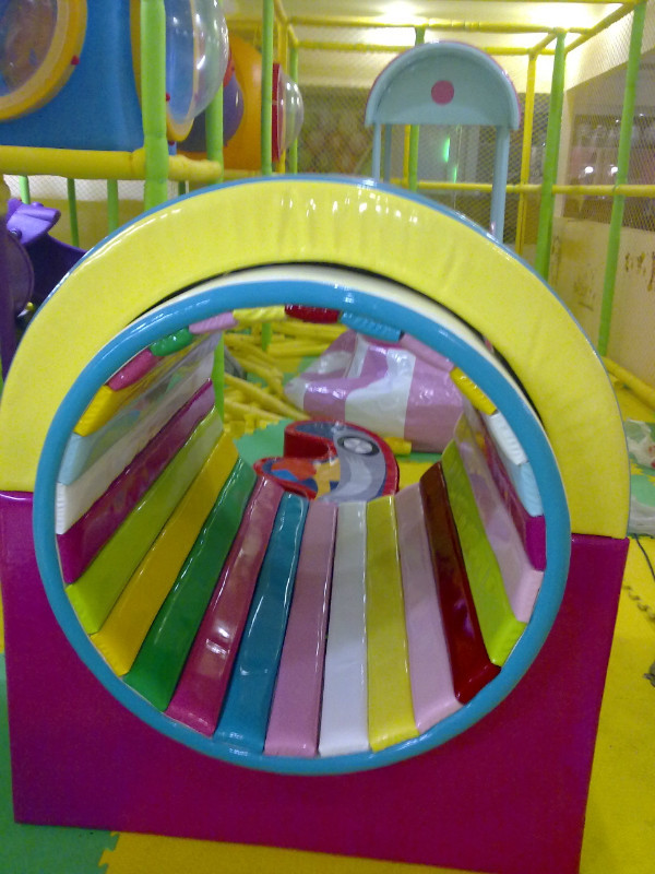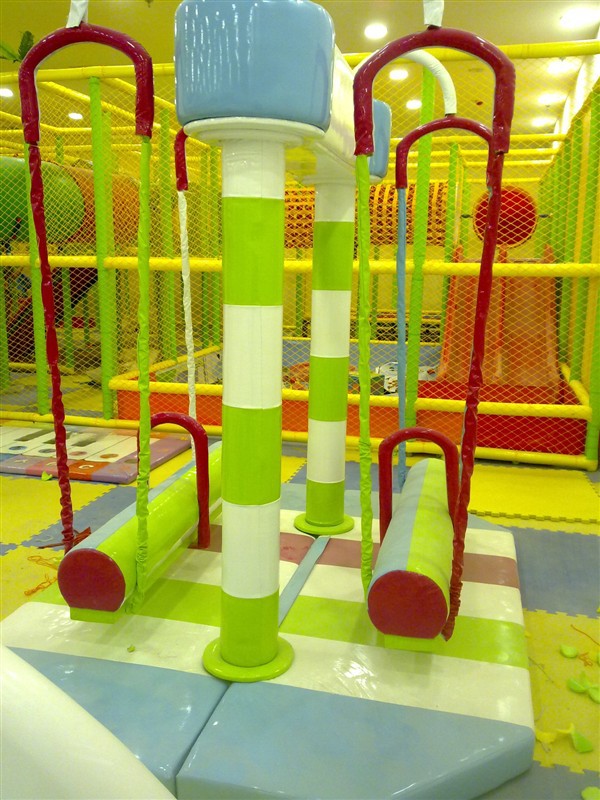 3、彩虹天梯:内部为木制,中间包重泡海绵(符合GB6675-2003标准),最外层包一层进口超强PVC经纬编织闪光革,强度高,安全性能优良,安装时倾角小于30度,符合国家标准;