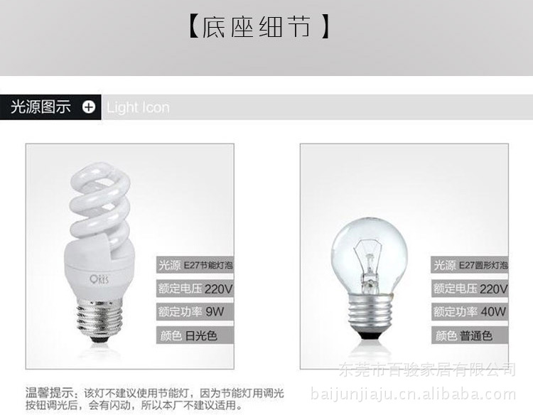 【光源电器】: 装1个E27螺口灯泡 也可装节能灯(本店非光源生产厂家,所售灯具均不含光源,如需本店代购请另付光源成本).