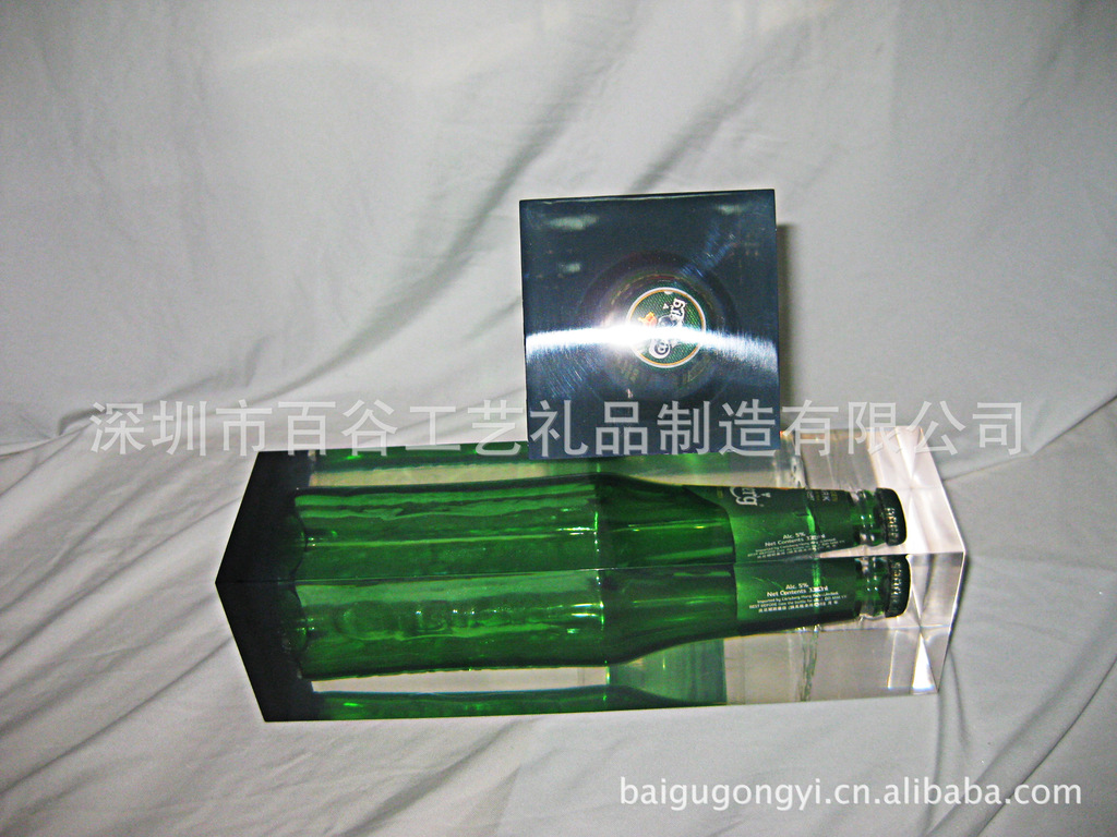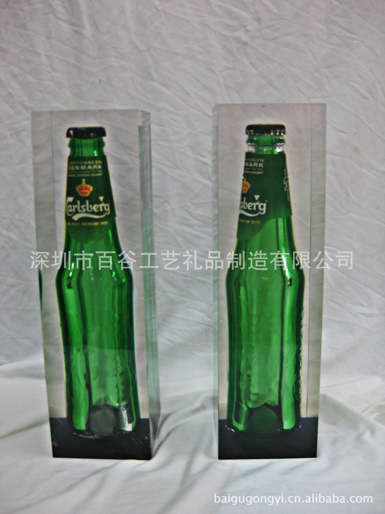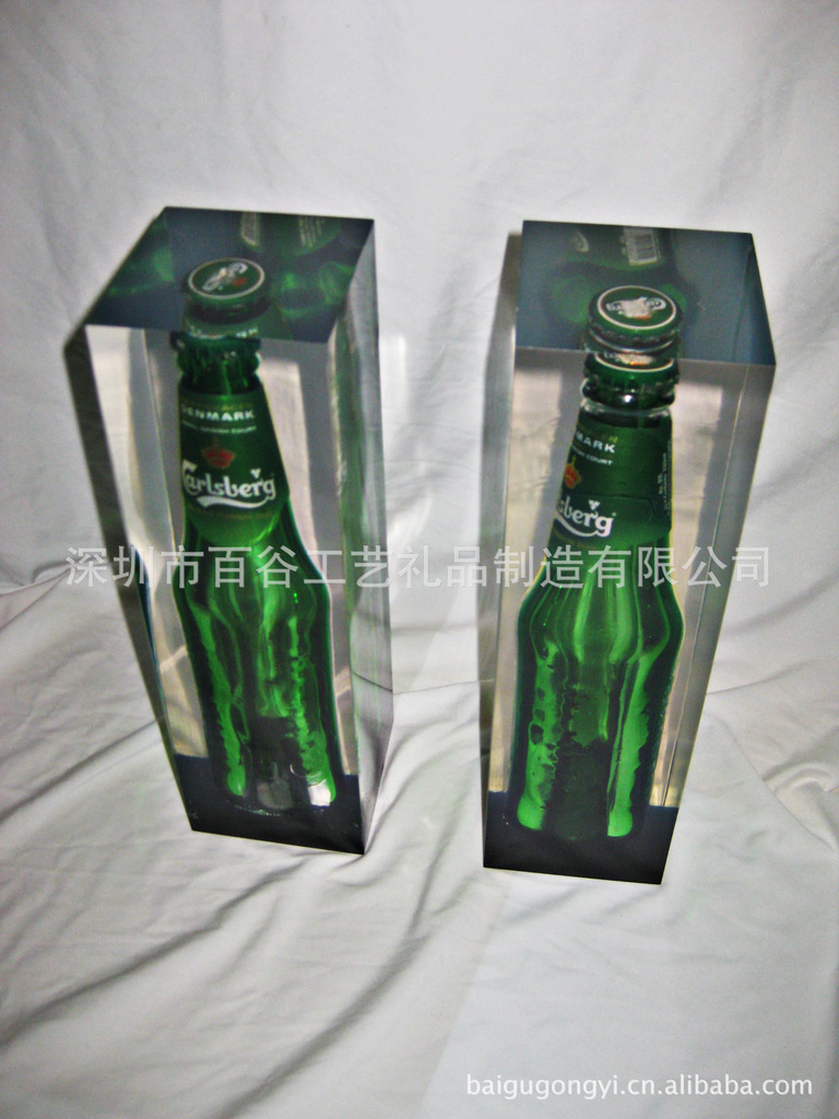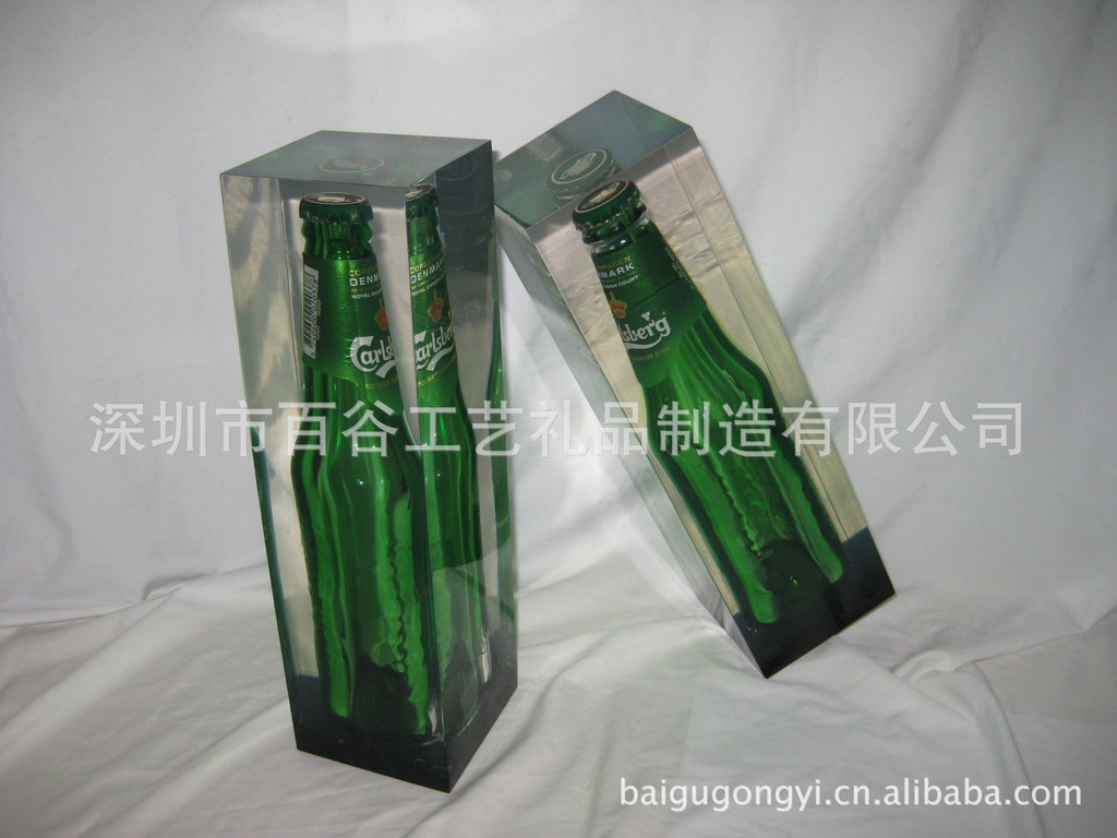 啤酒内藏,冰封效果工艺品,水晶胶浇灌,亚克力啤酒内埋标本