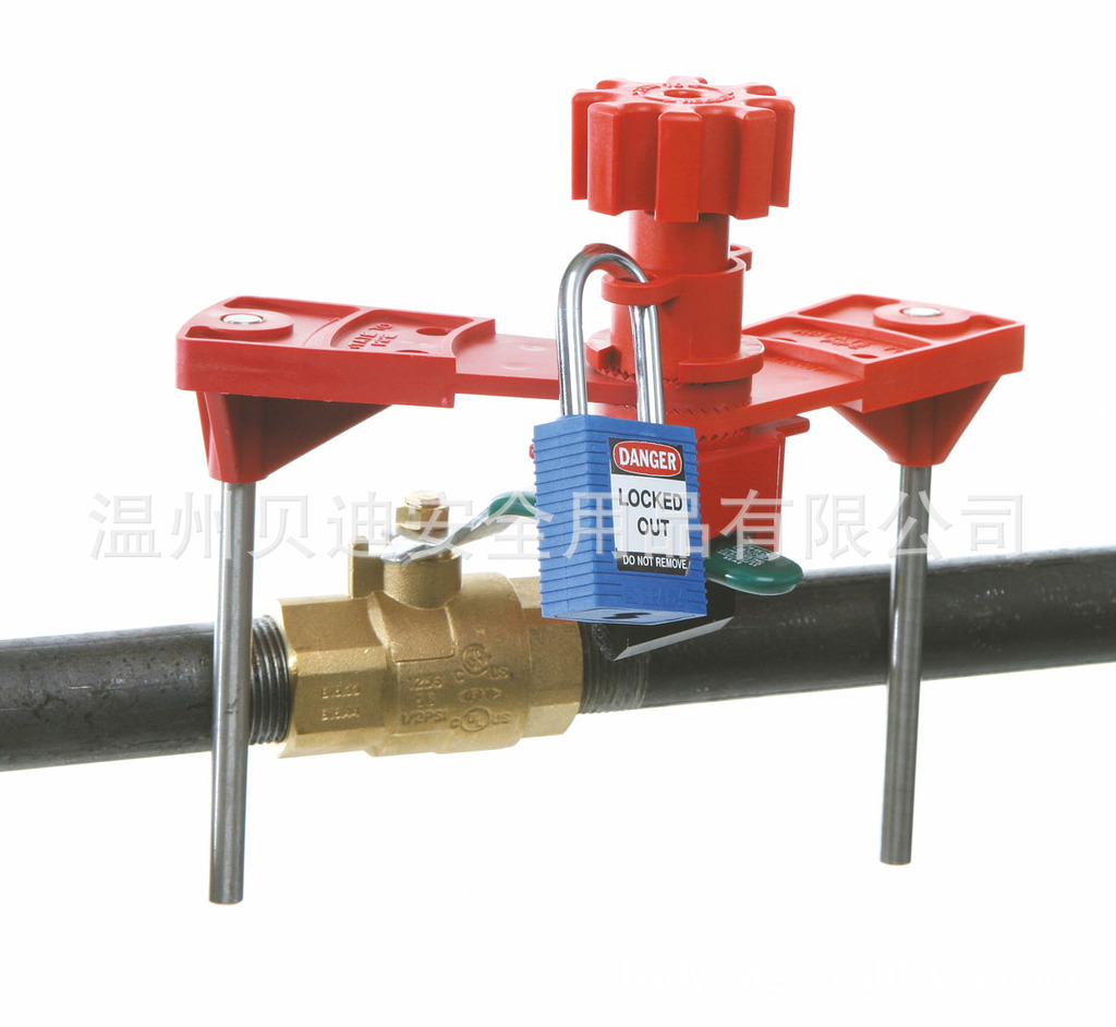 双挡臂万用球阀锁具采用工业级钢材和尼龙材料精制而成,功能非常强大,双挡臂灵活转动设计,可以锁定3向、4向甚至5向阀,并可将阀门锁定在节流位置进行操作控制。