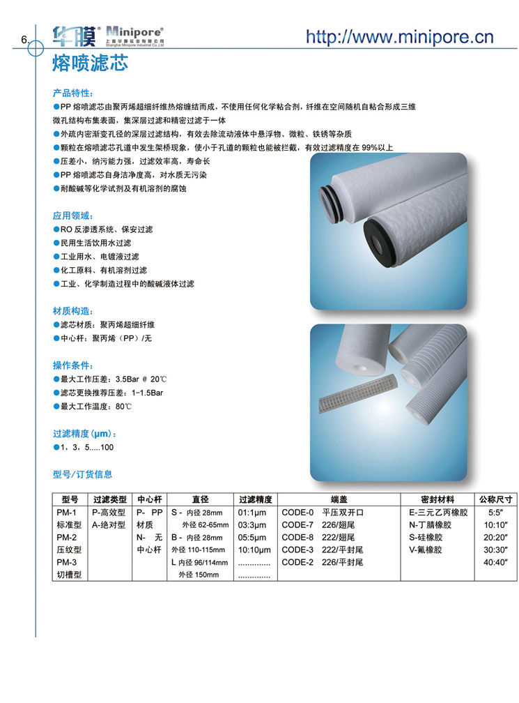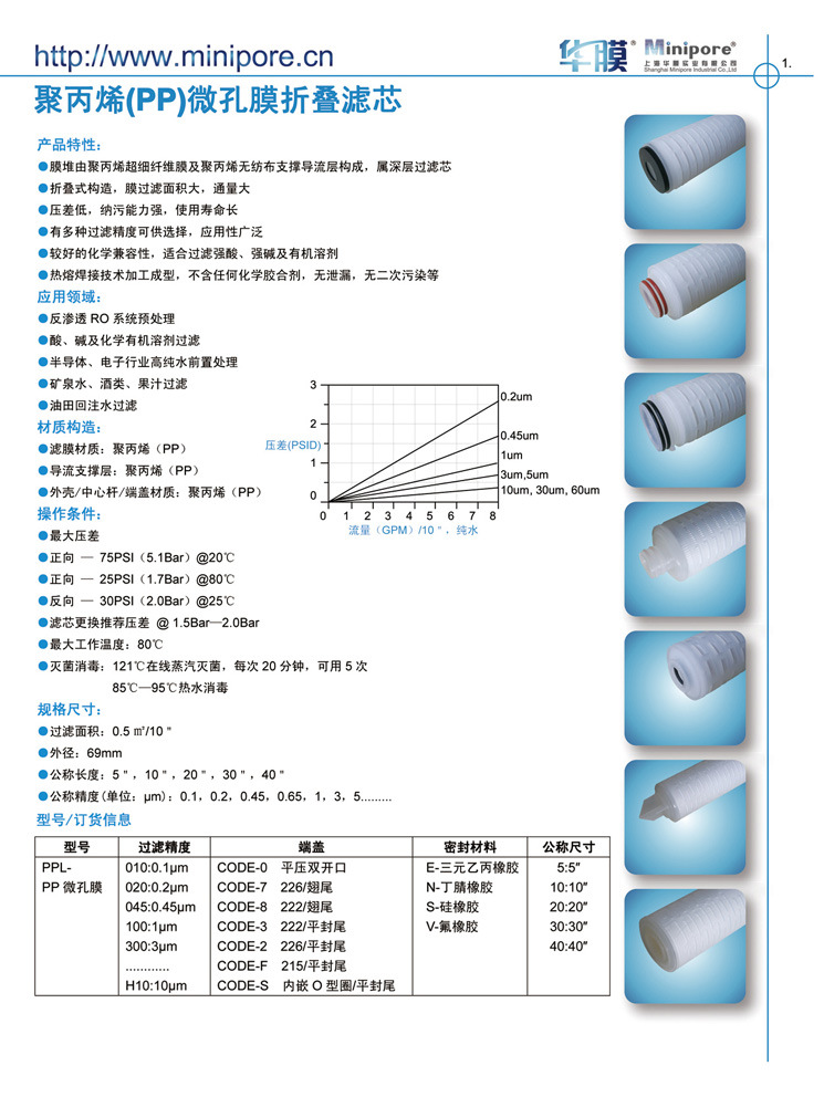打折结构过滤面积大,起始压差低,流速快,过滤器容积小,造价成本小。由于是预过滤和终过滤合二为一,因此滤芯容污能力较大。使用寿命比单一孔径的滤芯长。单一的纯聚丙烯材质,易判断其化学兼容性。