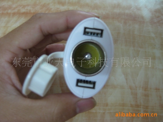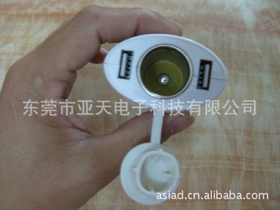 双USB车用充电器-带点烟器,两个USB可同时输出配用PDA、手机、数码MP3、MP4、相机等设备的数据线或充电同步线,即可对产品进行充电及点烟器。充电器电路设计过压、过流、过温和短路保护,更有效的保护你的电池和爱机,使其达到最佳的工作。