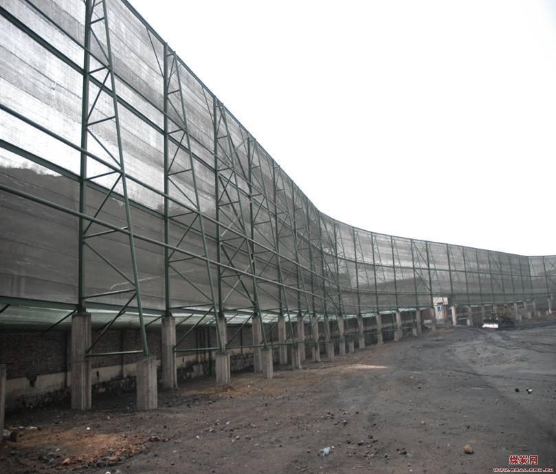 (2)防风网支护结构:工程设计按风力风速设计参数。采用钢支架支护,支架主要给“挡风抑尘墙”提供足够的强度,抵御强风的破坏,其次考虑整体美观。支架主体选用钢管,采用钢筋砼支柱作“挡风抑尘墙”的支架。 (3) 挡风板安装:使用寿命15~20年。使用环境温度:-40℃至+80℃,连接采用螺钉和压板固定。挡风抑尘扳的具体尺寸、弯曲度、开孔率应根据堆场的实际情况进行设计。 (4)挡土砖墙:为防止雨雪后煤泥水外溢,挡风墙下部可设置1.2—1.5米的挡土砖墙。