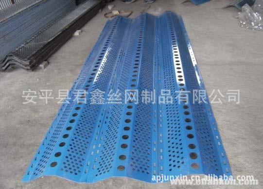 此产品采用金属原材料经机械组合模具冲孔、压制、喷塑而成,具有强度高、韧性好、抗弯曲、抗老化、抗阻燃、耐高低温、耐酸碱、承受弯曲变形能力强等优良性能;经过特殊配方和工艺制作,可根据用户需要制成各种厚度、颜色,具有使用寿命长、色彩鲜艳不易褪色等特点;综合抑尘效果良好,优于国内外同类产品。防风抑尘网不仅外形美观,维护成本低并且具备防火,防盗等优点;完全避免了以往表面覆盖、喷淋技术、全封闭几种措施反复投资、耗资巨大、受场地和作业要求限制、抑尘效果不佳的问。此项技术造价低、设置灵活、安装简单。一次投资,长期受益。挡风抑尘墙设置后不仅使污染严重的地区环境得到有交的改良,而且实施挡风抑尘墙的煤场每年还节省煤数千吨,在取得良好社会效益的同时又获得了最大的经济效益,美观整齐的挡风抑尘墙也成为这些地区一道怡人的风景线!