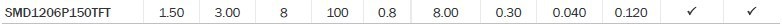 聚鼎可恢复贴片保险丝SMD1206P150TFT 1206 1.5 A 1.1A 2A