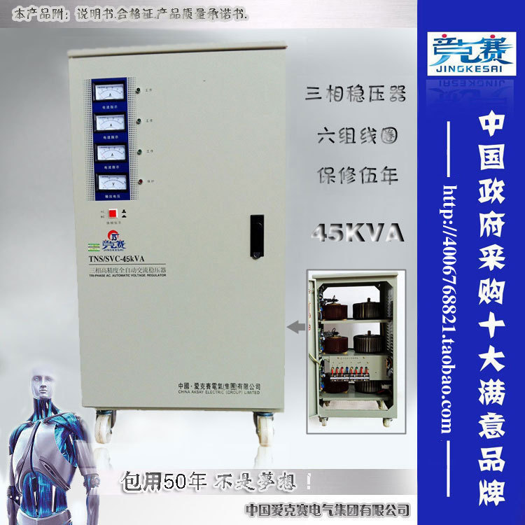 中国爱克赛电气集团有限公司(温州竟克赛电气有限公司)SVC、TND系列单、三相高精度全自动交流稳压器,由接触式自耦高压器、伺服式电动机、自动控制电路等组成,当电网电压不稳定或负载变化时,自动采样稳压器控制电路发出信号驱动伺服电机,调整稳压器自耦调压器碳刷的位置,使稳压器输出电压调整到额定值并达到稳定状态。 本稳压器设有短延时、过压等保护功能,根据用户的需要可增设长延时与欠压保护功能。本稳压器可广泛应用于任何用电场所,是一种理想的稳压电源,