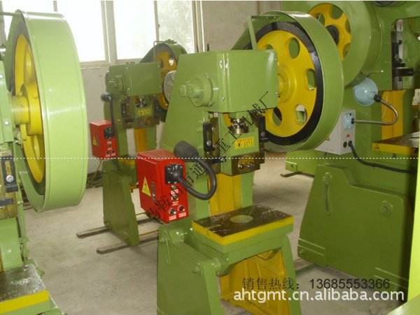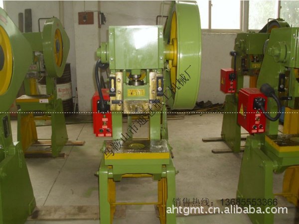 马鞍山通冠重工 --- 10T普通压力机 型号:J23-10T 公称压力:100KN 滑块行程:50mm 电机功率:1.5kw 重量:401kg 普通压力机特点: 1、高刚性、高精度机架,采用钢板焊接,并经热处理、消除了机身锝内应力以使设备长期稳定工作不变形。 2、普通压力机主要部件曲轴、齿轮、传动轴等部位均经硬化热处理后在研磨加工都有很高的耐磨性,长期性能稳定,确保了高精度稳定的要求。 3、操作方便、定位准确是因为普通压力机采用了区别于传统的刹车器,离合器/刹车器的组合装置具有很高的灵敏度,再加上国际高端设备通用的双联电磁控制阀以及过负荷保护装置,确保了普通压力机滑块高速运动及停止的精确与安全性。 4.普通压力机可搭配相应的自动送料装置,具有送料出错检测、预裁、预断装置,可完全实现自动化生产,成本低,效率高。 普通压力机概述:广泛应用精密电子、通讯、电脑、家用电器、汽车零部件、马达定转子等小型精密零件的冲压加工。 通冠重工机械生产:J23-10T普通压力机、J23-16T普通压力机、J23-25T普通压力机、J23-40T普通压力机、J23-63T普通压力机、J23-80T普通压力机、J23-100T普通压力机、J23-125T普通压力机、J23-160T普通压力机以及各种系列深喉冲床,各种系列固定台冲床。
