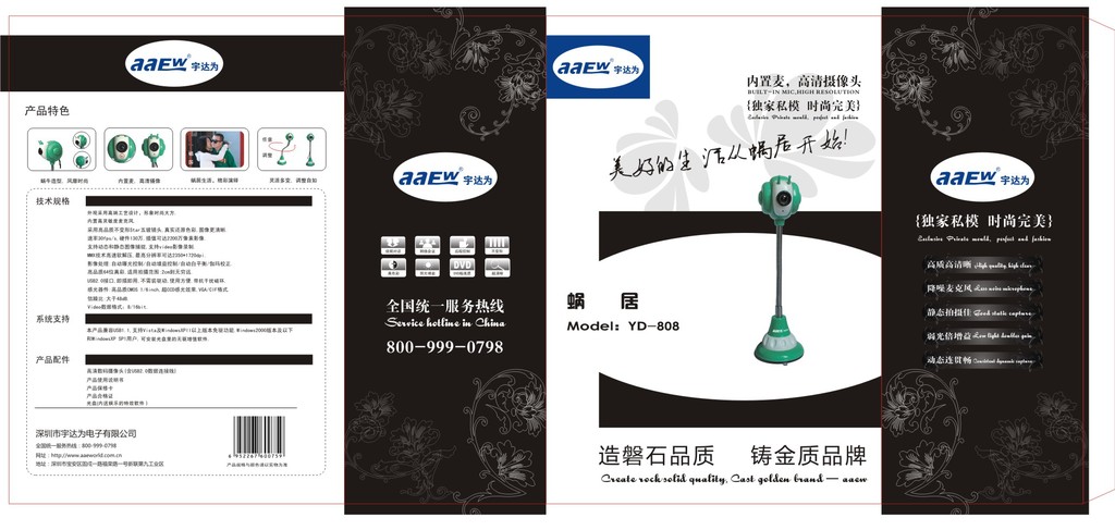联系人:邵小姐 商务QQ:543911582 财富热线:13544189067 深圳市宇达为电子有限公司坐落于深圳宝安福永,成立于2007年,是一家专注于电脑摄像头,网络监控摄像头,无线鼠标,高清影音线材领域研发、生产与销售为一体的厂家,经过几年的市场沉淀及品牌行销,凭借公司摄像头产品的高品质和优惠价格,宇达为自有摄像头品牌"AAEW"现已成为国内摄像头行业的知名品牌。
