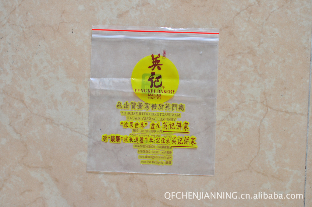 1)以聚乙烯(LDPE)和高压线型聚乙烯(LLDPE)通过吹膜成型,热切机制袋,制成的一种可以重复封口的塑料袋。