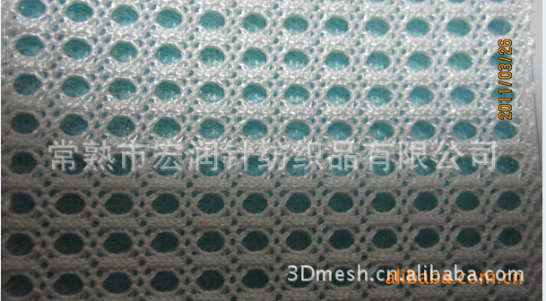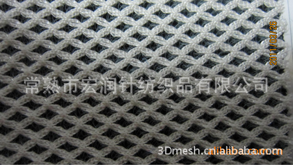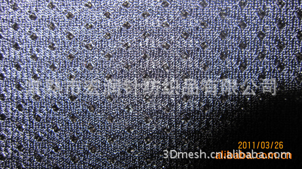 主要用于车套、运动服装、箱包等,牢固耐用。表面是网状的(较大的圆形网孔),底下有层密网,使得表面的网不至于变形太大,加强了面料的牢度及色彩度。