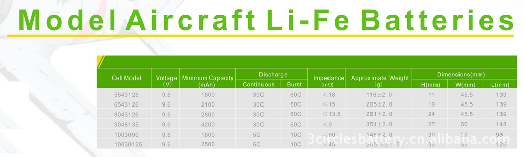 Model Aircraft Li-Fe Batteries