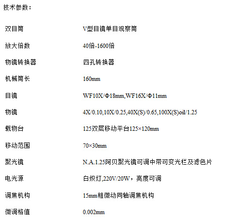 产品名称:XSP-BM-1CA生物显微镜产品型号:XSP-BM-1CA产品简介:彼爱姆显微镜是用途的光学仪器之一,它应用了光学原理的显微放大技术,对采集的细微样品制作成标本,进行显微技术的放大和观察,研究微观世界的奥秘,可广泛应用于医院作病理检验、常规化验和医学教学各科学研究领域。