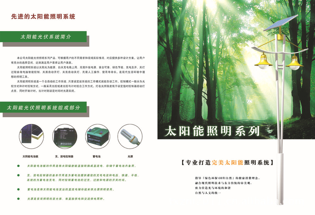 (5)寿命长:太阳能电池板在20年以上,蓄电池3-5年,LED光源可达5万小时以上;