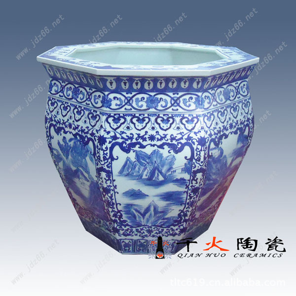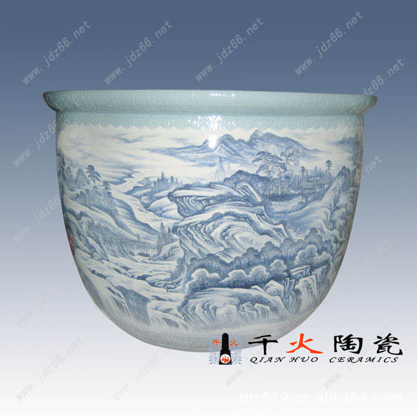 景德镇陶瓷闻名天下,更以大件陶瓷极难烧成,废品率高而显珍贵。缸是陶瓷大件中最难烧成的器形,因其有藏财聚富之寓深受广大消费着所推崇。景德镇陶瓷缸适应大场所,大场面。酒店宾馆陈设,企业单位庆典,店铺开张,周年纪念,大楼建筑落成,工程竣工等必不可少的开业礼品。不管在颜色方面还是造型上都搭配非常协调。从档次上考虑,陶瓷大缸为全手工制作包括胚胎都是非常考究的,而且如此有气势、纪念意义强烈的陶瓷大缸,做为商务礼品是非常珍贵的。是政府之间、公司之间、客户之间礼尚往来的见证,是往来嘉宾关注的焦点,特点就在于它的大气、保存时间长,走那都能看到,欣赏率高,让大家都会记得您的大礼!。