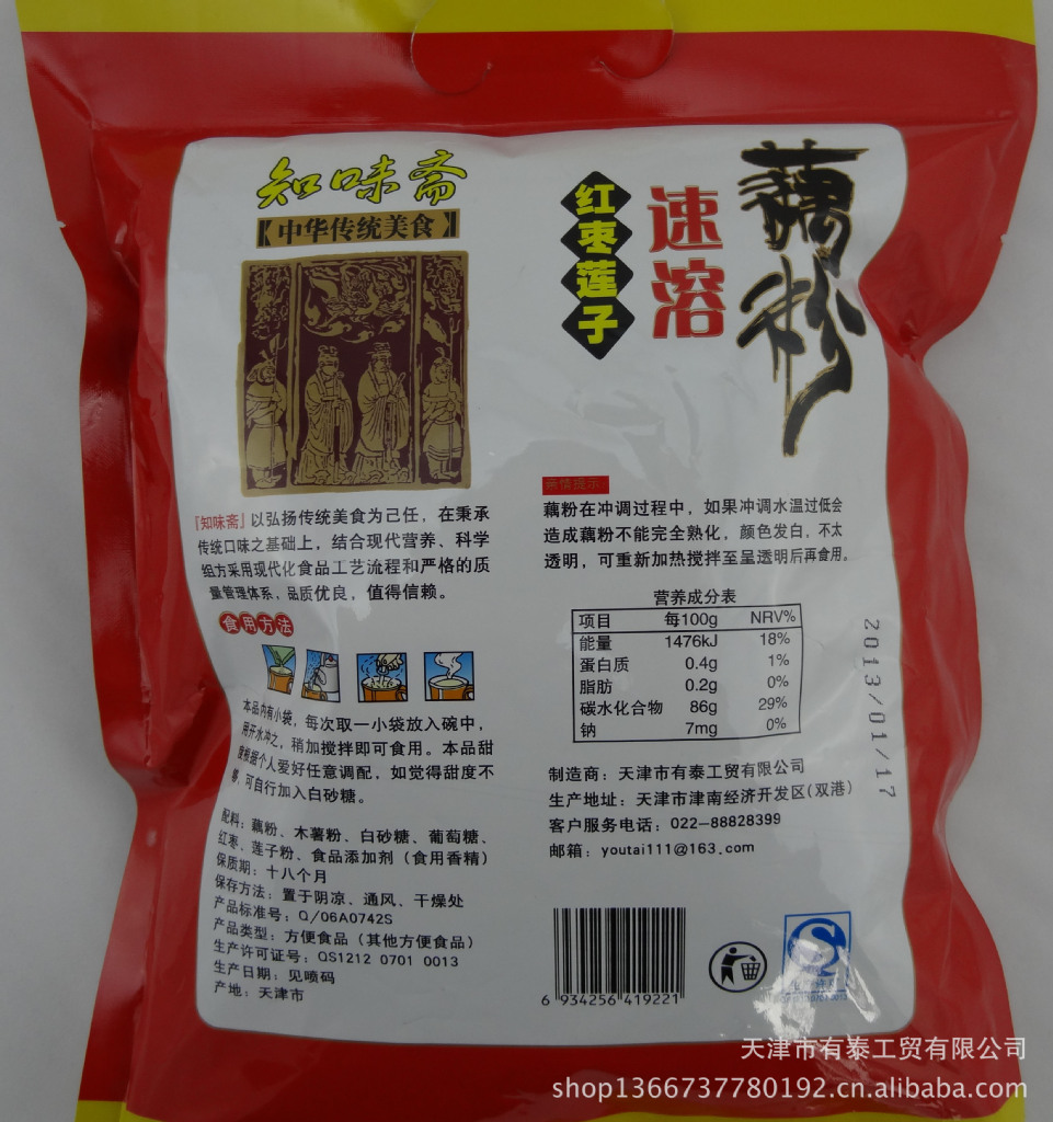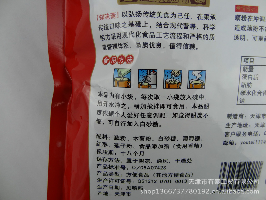 公司介绍:天津市有泰工贸有限公司成立于2003年,是藕粉、黑芝麻糊、核桃粉、麦片、固体饮料等产品专业生产加工的公司,拥有完整、科学的质量管理体系。天津市有泰工贸有限公司的诚信、实力和产品质量获得业界的认可。欢迎各界朋友莅临参观、指导和业务洽谈。